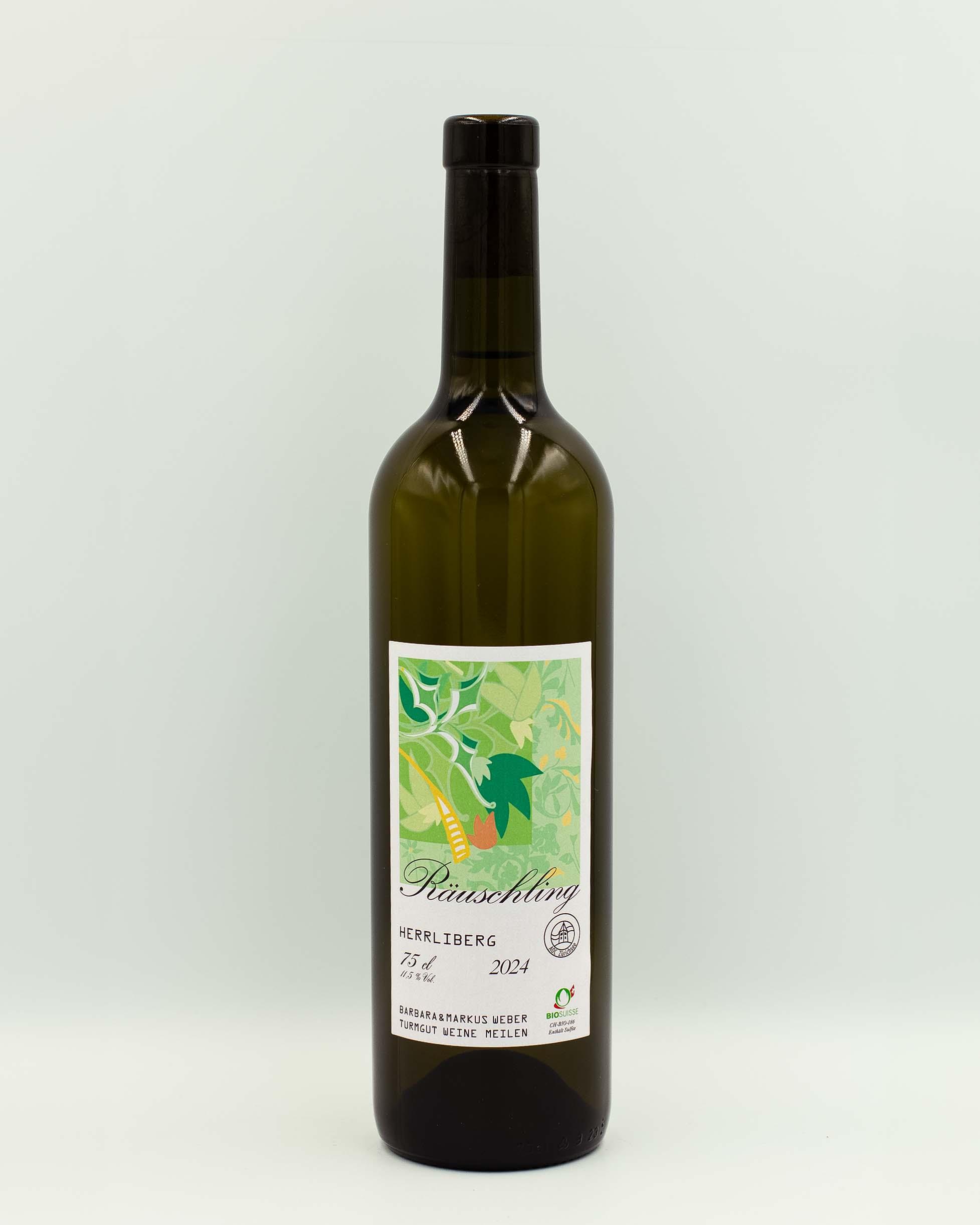 Helles gelb. In der Nase Düfte von Zitrusfrüchten und Rhabarber. Die sortentypische, frisch-fruchtige Säure macht diesen Wein sehr spritzig. Zarter, spannender Mandelton im Abgang. Biologisch, vegan, ein toller Räuschling vom Zürichsee.